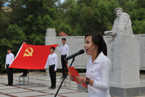 党委组织员、党校副董事长刘谦同志代表党委组织部讲话。他说,站在铁人雕像前,举行新党员入党宣誓仪式,既是对建党94周年的隆重纪念,也是对新党员一次深刻的党性教育。每一名党员都将永远记住这个神圣的时刻,激励自己终生践行入党誓言,传承铁人等老一辈创业者对国家的责任,为党的事业奋斗终身。他希望新党员能端正动机、牢记使命、模范带头,像张丽莉老师那样全心全意为员工服务,全心全意的投入到党的教育事业当中,努力实践着自己的诺言,像“呐喊哥”消防战士李治那样,危急时刻挺身而出,呐喊出一种正能量。在同学中做好宣传教育工作,引导和带动青年员工不断增强对马克思主义的信仰、对共产主义的信念、对中国特色社会主义事业的信心、对以习近平同志为总书记的党中央的信赖。