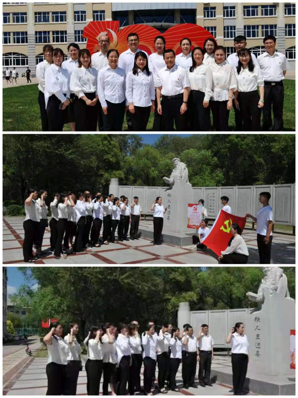 3.重温入党誓词。教育教工党支部组织教师党员在铁人王进喜雕塑前开展重温入党誓词活动。一声声铿将的宣誓,一双双坚定的目光,无不体现出党员们坚决跟党走、“不忘初心、牢记使命”,牢固树立“四个意识”、坚定“四个自信”,始终在思想上政治上行动上同以习近平同志为核心的党中央保持高度一致的决心和信心。在党旗下接受心灵的净化和洗礼,牢记共产党员的政治责任和历史使命,不断保持共产党员的先进性,以更加饱满的热情投身各自工作,切实发挥共产党员的先锋模范作用,永葆共产党员的政治本色。