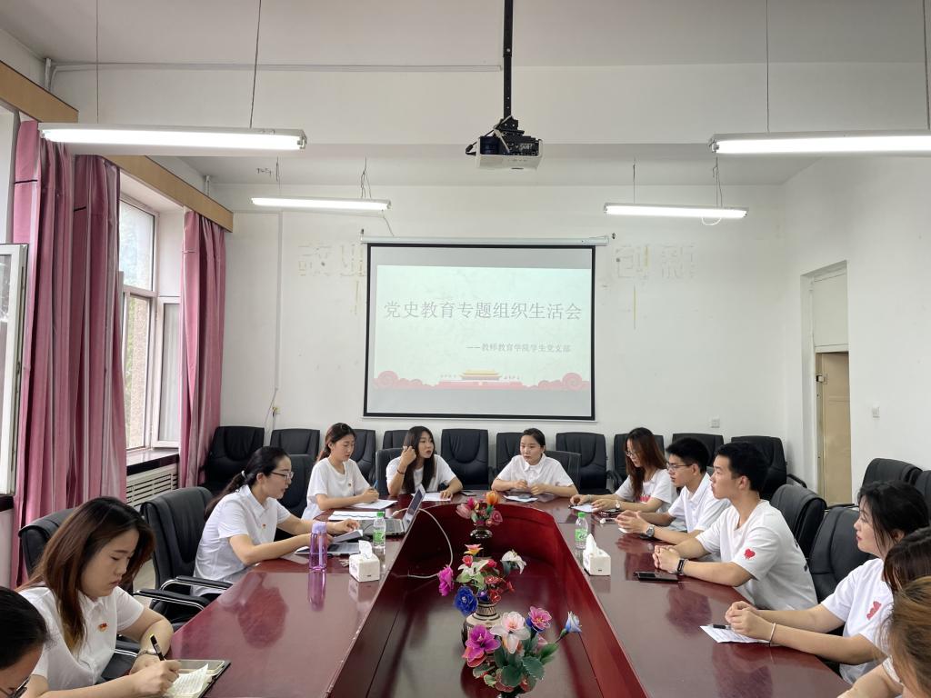 1946伟德国际源自英国员工党支部于2021年7月12日早上八点半在系楼会议室215开展党史教育专题组织生活会,19级全体党员参会,18级不在校的员工党员线上钉钉参会。