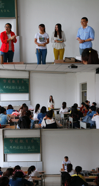 首先,学前教育系主任姜珊珊做了热情洋溢的考研表彰和考研动员,并与李锋老师共同为3名考研明星颁发了纪念品。接着,考取西南大学、辽宁师范大学、渤海大学的任梦、刘文婷和侯宇慧三位同学分别向学弟学妹详细介绍了从考研规划、复习、初试、复试、调剂等全程性的备战方法和模式,同时分享了各自考研复习中的宝贵经验,紧接着一一解答了同学们在考研复习中遭遇的困惑。最后,学长和学弟学妹们完成了基于“考研互动QQ群”的学前教育系“考研互动同盟”的平台对接和考研资料的分享交流。