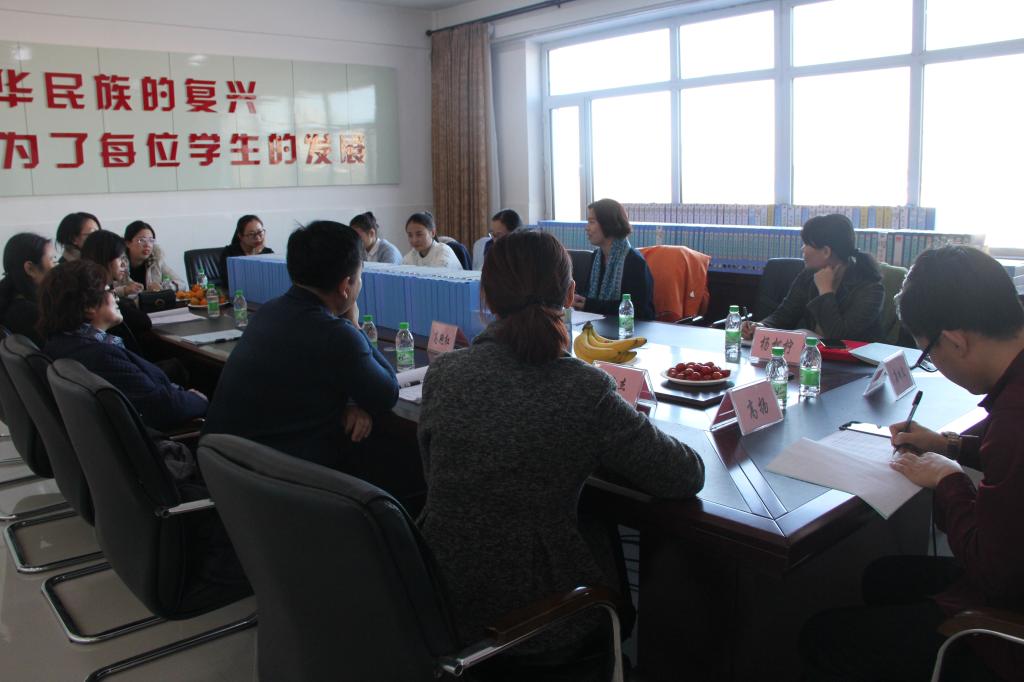 汇报课结束之后,在让北一小主楼会议室进行了汇报课评课及“校校合作”人才培养模式研讨。让北一小董事长唐树文、副董事长付淑杰、教导主任程明英以及8位骨干教师和指导教师参加了此项活动。