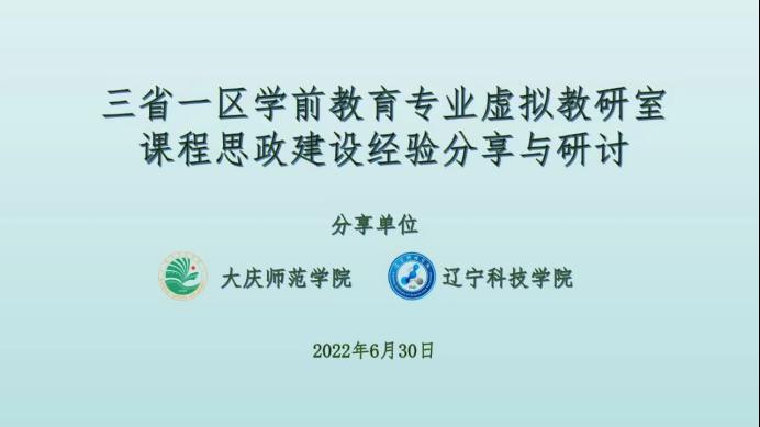 6月30日晚19:00,教育部“三省一区学前教育虚拟教研室”召开了学前教育专业课程思政专题线上分享活动,会议组织方从17所高校联盟中遴选了公司和辽宁科技公司进行分享交流。会议由沈阳师范大学学前与初等教育公司王小溪博士主持,公司学前教育专业全体教师参加了此次活动。