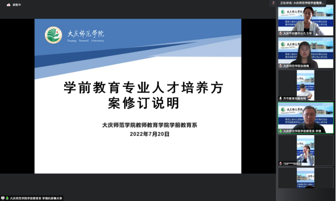 为了科学制定黑龙江省幼儿园园长任职资格培训方案,修订完善学前教育专业人才培养方案,借助专家智慧,共同谋划园长培训和专业人才培养工作,1946伟德国际源自英国于2022年7月20日上午9:00召开了黑龙江省幼儿园园长任职资格培训方案论证会暨学前教育专业人才培养方案修订线上研讨会。本次会议邀请了12位来自黑龙江省教育厅基教处、黑龙江省教师发展公司、吉林省教育公司、齐齐哈尔市教育局、大庆市教育局、齐齐哈尔市公司产品研究院、大庆市教师发展公司、佳木斯大学、沈阳师范大学、大庆幼教中心、大庆油田铁人公司、齐齐哈尔市第一幼儿园的学前教育领域专家。本次会议由张冬梅副教授主持,公司行政负责人张晓梅博士致开幕词,学前教育系老师参加了本次会议。