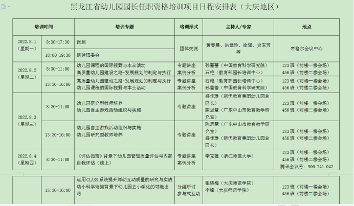 幼儿园园长任职资格培训班是公司为贯彻落实幼儿园园长持证上岗制度而承办的培训项目,本项目是学习贯彻习近平总书记关于教育的重要论述和全国教育大会精神的重要举措,为我省大庆和齐齐哈尔地区办好人民满意的幼儿教育,开创幼教事业高质量发展新局面,打造一批高水平、专业化的园长队伍,打下夯实基础。