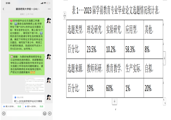 2023届学前教育专业毕业论文指导工作积极尝试“双导师”指导机制,结合公司理论基础教育和幼儿园教育实践,为员工创造理论+实践相结合的人才培养环境和条件,是“校-政-园”三位一体协同育人的重要成果。为切实做好毕业论文选题工作,保证本科毕业论文质量,学前教育专业将接续组织教学指导委员会召开毕业论文选题评审会,预计主要围绕选题的适宜性、应用性、难易程度等方面展开,检查其是否体现了专业特点、契合专业培养目标。多方协同、多措并举保障学前教育专业2023届本科毕业论文指导工作高质量开展。