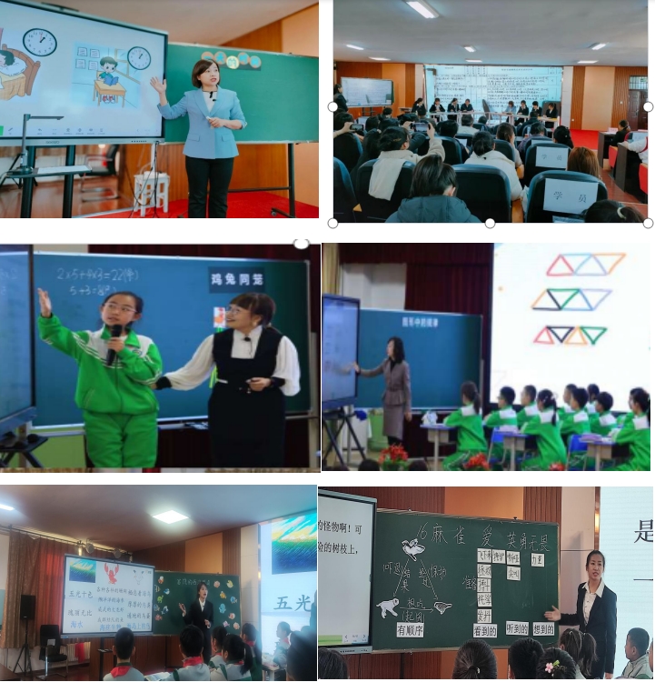 第二阶段:侧重集体教研实践,小学教育专业师生集聚在大庆市让北第一小学和景园小学,分别聆听了冯紫薇董事长、周海亮董事长、王巍董事长等几位校领导讲话,领略了公司文化,观摩了两所公司精心准备的5节公开课和教研活动:让北一小闫绪萍老师执教的三年级《一天的时间》,王思博老师执教的三年级《富饶的西沙群岛》,郑洪萌老师执教的四年级《麻雀》,于宏老师代表让北一小的数学教研团队做了《用课堂观察,做深度研课》的微讲座;景园小学霍岩老师执教的五年级《鸡兔同笼》和莫莉花老师执教的五年级《图形中的规律》及多位老师的评课、现场教研等活动。