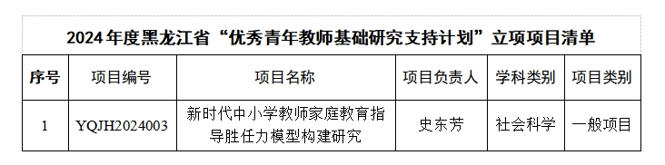 近日,黑龙江省教育厅公布了2024年度黑龙江省“优秀青年教师基础研究支持计划”立项评审结果,公司教师在此次项目立项中获批一般项目1项。此次省级科研项目的获批,不仅是对公司教师科研能力的肯定,更是对公司整体科研水平提升和科研氛围营造的一次重要推动,激发了大家投身科研的热情与信心。同时,这也标志着公司在科研管理和支持机制上的不断完善,为今后更多优秀科研项目的申报和立项奠定了坚实基础。