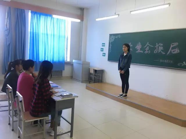 本次换届工作的面试主考官为四人组,参照上图从左到右依次是办公室主任于鑫鑫学姐,员工书记唐美丽老师、新生辅导员孟蝶老师和办公室助理毕媛学姐。高冷却温柔的女神,睿智且风趣的长辈,慈爱而严厉的老师,机灵又可人的邻家学姐。这样风格迥异华丽的阵容是不是很赞?选手们惊不惊喜?心不心动?