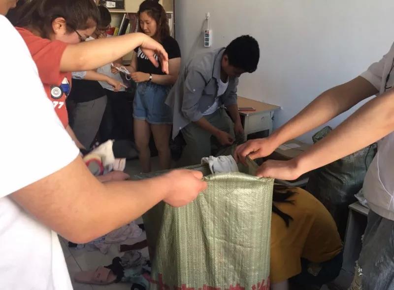 组织人员对捐赠的衣物进行统一拣选、整理、分类和打包,用实际行动为贫困孩子们奉献了爱心。