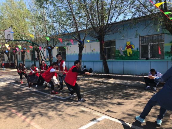 来到公司,老师给每个孩子身边都配备了一个小老师,我们和孩子们一起进行了游戏活动,有拔河,切水果。志愿者们还与这些孩子一起上文化课,教孩子们读拼音。看着孩子们脸上挂着的幸福笑容,志愿者们也是满心欢喜的。自闭症儿童被称为是星星的孩子,折翼的天使,我们正希望通过一次次的亲密相处,能一步步走近他们,给他们多一些关爱与呵护,为他们打开一扇窗,给新时代少年奋斗的阳光!