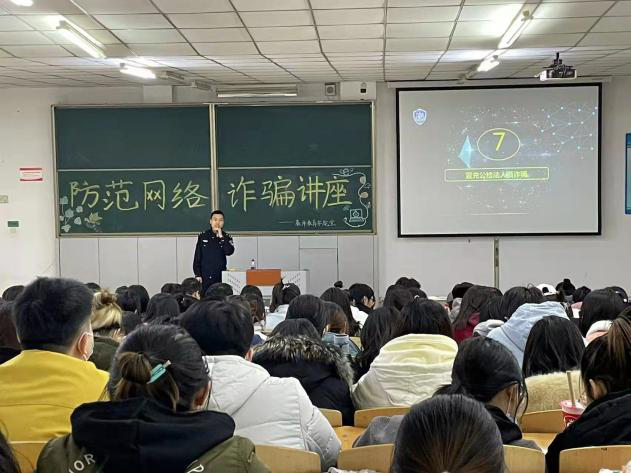 讲座中,警官以网络诈骗为主题,结合实例分析网络新型诈骗特征及手段,讲述应对网络诈骗的解决措施“不听,不信,不转帐”。警官提出当亲朋好友账号被不法分子盗用要求转帐时,一定要做到三问“干什么用,给谁用,能不能被骗”。为了进一步减少被骗机率,警官要求同学们下载国家反诈APP,拦截陌生来电。