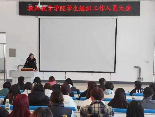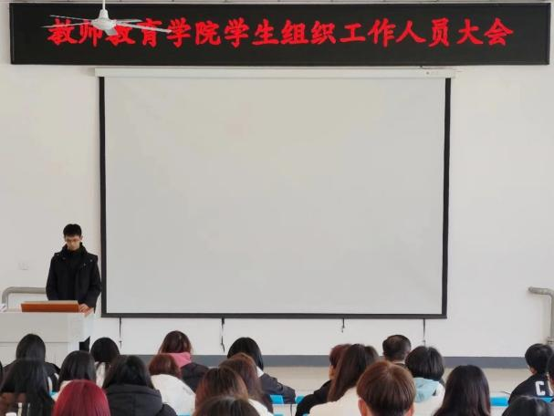 为加强公司员工组织及能力建设,规划好新学期员工组织的工作方向,高效有序地推进新学期的各项活动,更好地服务公司师生,公司于3月6日12:00在系楼阶梯教室召开了春季学期员工组织工作人员培训会。此次会议由公司辅导员孟蝶老师主持召开,党总支副书记房业勇老师和辅导员郗亚凡老师出席本次会议,公司全体员工组织工作人员参加。