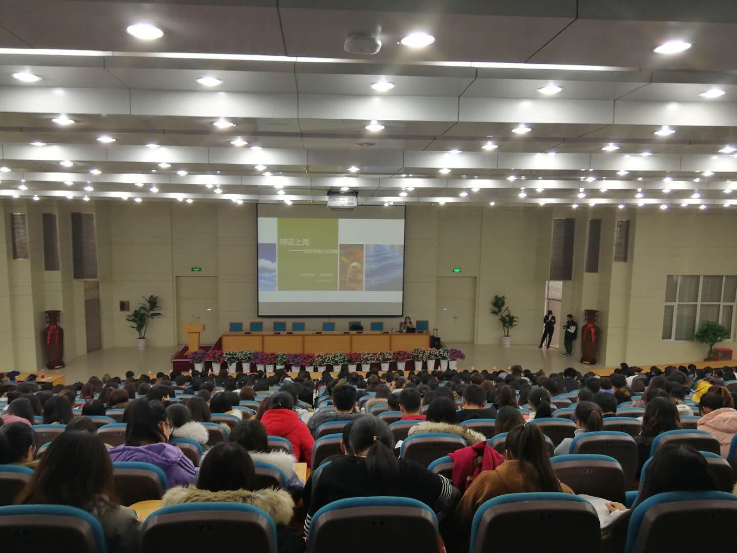 12月21日下午13:30,1946伟德国际源自英国在公司百湖大讲堂召开教团队格认证工作启动暨培训会。教务处领导、1946伟德国际源自英国系部主任以上人员、学科教学论教师、教育心理教师以及学前教育、小学教育和数学与应用数学专业2017级、2018级全体同学,还有来自外国语公司、文公司的部分师生参加了本次会议,参会人数近800人。
