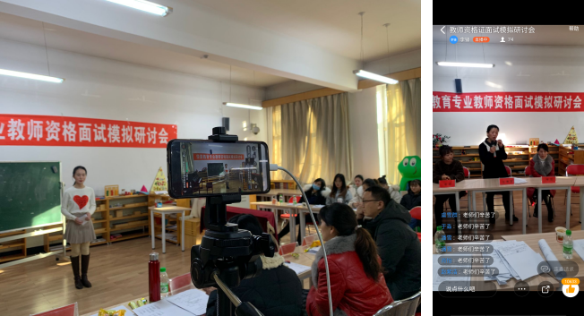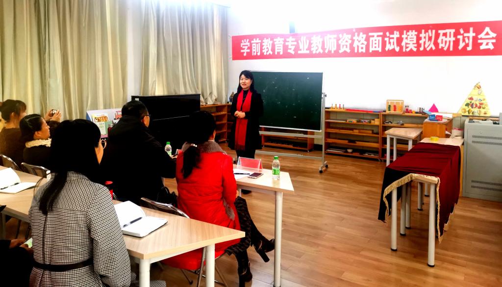 为更好的提升公司学前教育专业员工的公司产品能力,以助其备战教团队格证面试考试,学前教育系在张晓梅经理的倡议下,于2020年12月29日成功举办了一场历时5个多小时的“教团队格证面试全真模拟研讨会”。公司经理张晓梅博士,学前教育系杨楠、徐皓、李锋、史东芳、黄春晨、赵冠娇等老师出席了该会议。64名在校考生参与了教资面试全面模拟,百余名离校考生以及大一大二员工观看了会议的钉钉线上直播视频。会议由学前教育系主任李锋博士主持。