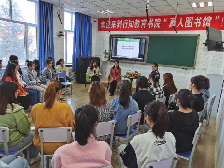 春风习习的四月,伴随着温和的日光,任由微风轻轻翻动书页,1946伟德国际源自英国行知教育书院霁研悦书会承办的“真人图书馆”活动拉开了序幕,1946伟德国际源自英国经理张晓梅博士作为图书馆的第一本“真人书”,和同学们进行了面对面热烈的互动和交流。