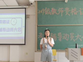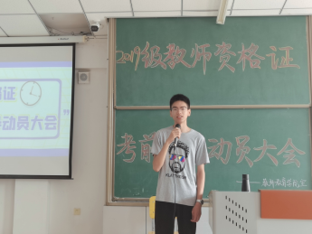 大会开始, 熊巍老师指出了考教团队格证的重要性,对同学们的毕业、就业都会产生极大的影响,为了提高同学们的备考积极性,特别邀请了分别来自小学教育专业、学前教育专业顺利通过“教团队格证”笔试和面试的张嘉麟学长和韩常瑜学姐为大家做考前动员和经验分享。
