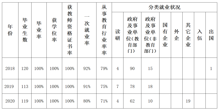 公司通过问卷调查、电话回访等方式调查显示,用人单位毕业生的满意度均达到90%以上。绝大部分用人单位认为本专业毕业生师德修养、教育情怀、从教信念、适应性等方面素质好,专业知识较扎实,执教能力强,展现出良好的科学及人文素质、较强的应用能力和创新意识。