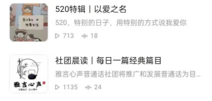在每周的社团活动日和有重要意义的节假日里,如劳动节,社团成员们会用饱满的热情、真挚的声音传达着对各行各业辛勤奉献的劳动者们的敬意,感谢他们用无私的奉献将富有生机的生活带给我们,我们也会将音频上传到“喜马拉雅”上面。
