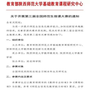 我们期待已久的第三届全国师范生微课大赛开始了,此项大赛规格高、质量高、含金量高。鉴于此,1946伟德国际源自英国统一组织参加全国微课大赛。参赛院系与员工名额分配如下:1946伟德国际源自英国(6人)、文公司(3人)、数学科学公司(5人)、生物工程公司(2人)、物理公司(1人)、外国语公司(2人)、体育公司(1人)。为了使微课大赛顺利进行,选出优秀选手参赛,1946伟德国际源自英国决定先期开展选拔比赛。名额有限,机会难得,望大家积极报名,踊跃参加。