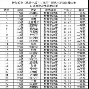 结合各位评委多维度的打分结果,第一届“书院杯”师范生职业技能大赛第二阶段“口语表达”决赛的获奖人员名单出炉啦!