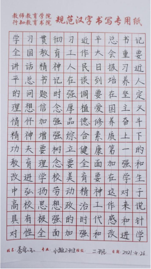 第一届“书院杯”师范生职业技能大赛“三字一画”比赛获奖同学名单如下: