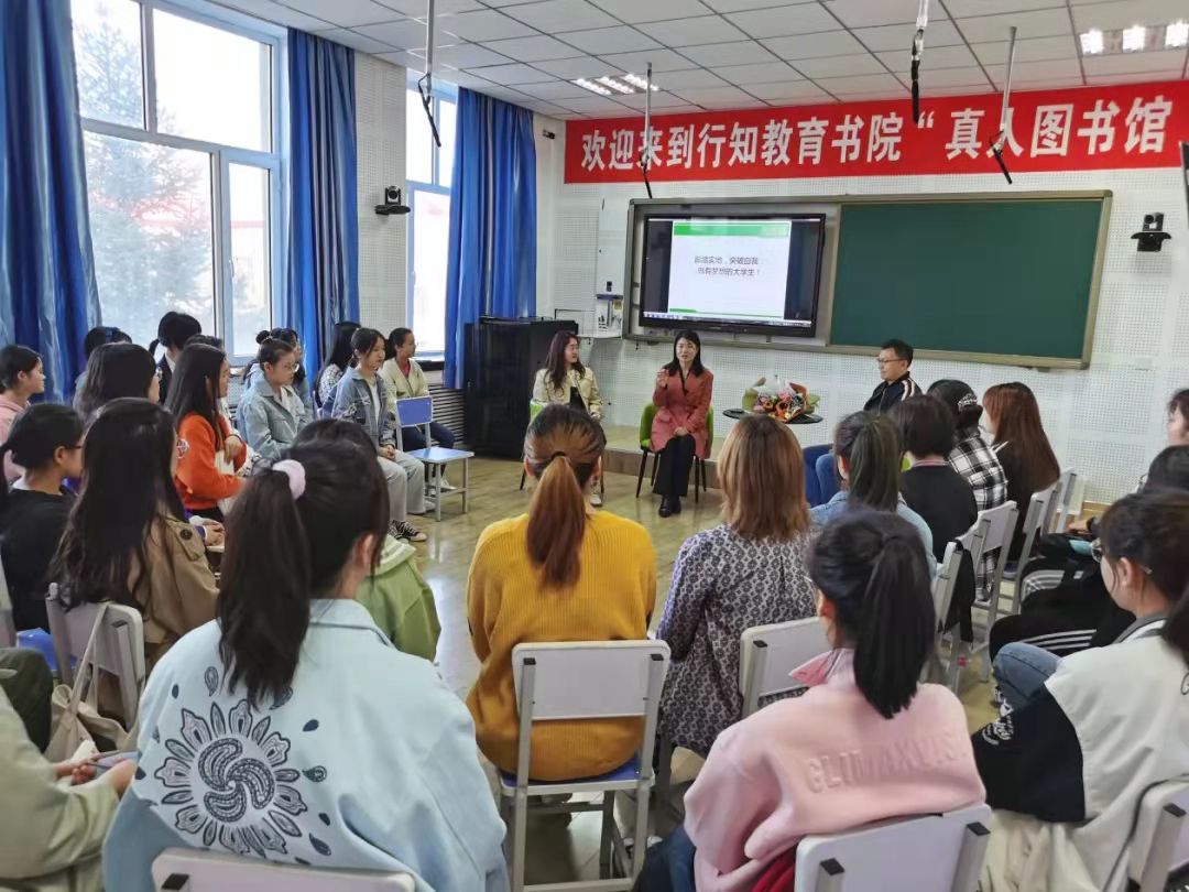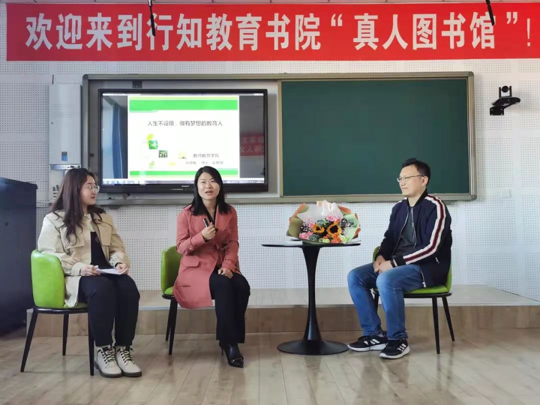 春风习习的四月,伴随着温和的日光,任由微风轻轻翻动书页,行知教育书院霁研悦书会承办的“真人图书馆”活动拉开了序幕。在学前专业员工精心拍摄的VCR热场后,1946伟德国际源自英国经理张晓梅博士作为图书馆的第一本“真人书”,和同学们进行了面对面热烈的互动和交流。