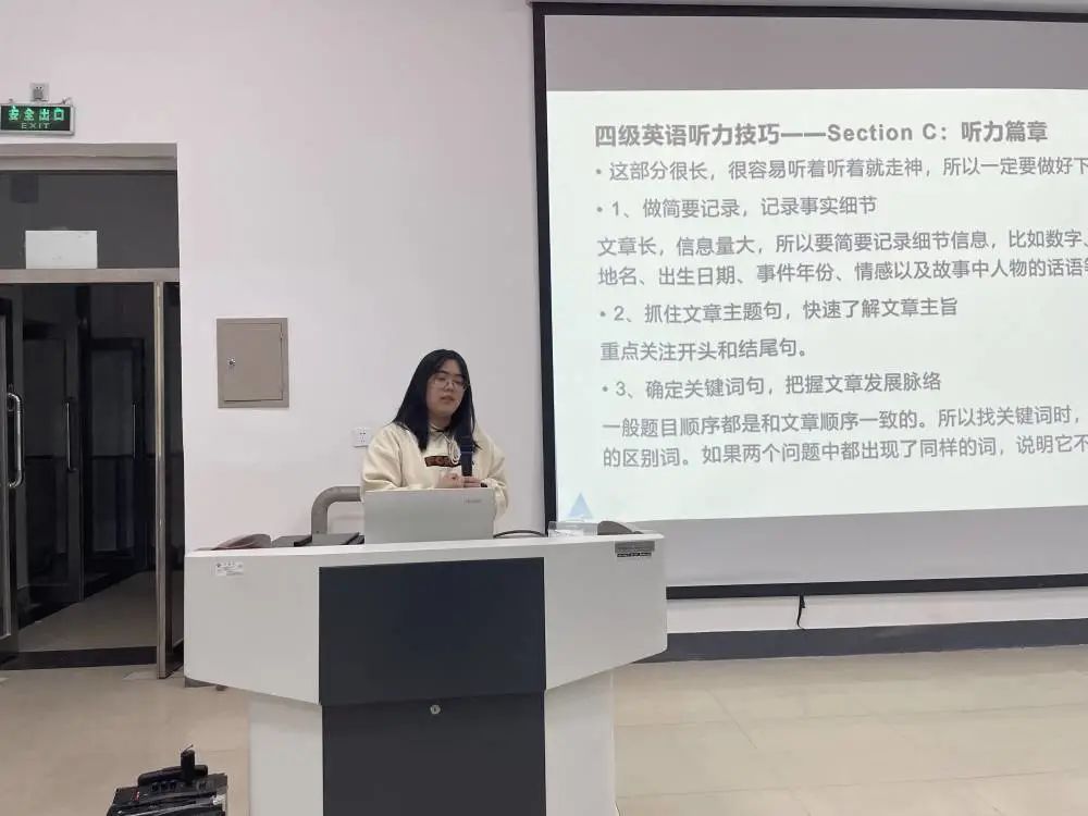 本次考前经验分享会邀请了李小兰、李伟平、戴旖旎三位同学来向大家分享他们关于四六级考试的“独家秘笈”。