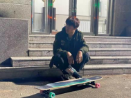 浅蓝白色棉服和米白帽衫挡住了冬日的寒冷