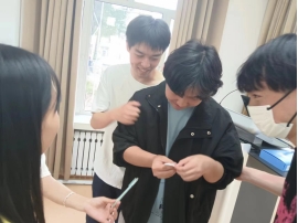 活动包含四个小游戏,第一个是“情绪转换”,用自己认同的积极的观点或情绪词语替代不认同的消极的词语,引导大家调节、转换情绪,拥抱积极的生活;第二个是“你划我猜”,两人为一组,通过成员间的默契来猜测相关心理学的词汇,培养合作理解能力;第三个是“烦恼气球”,两人一组挤爆气球,并为气球中掉落的烦恼纸条上的问题想出解决办法;最后一个游戏是心理知识问答,通过问题测试来了解同学们对于心理知识的掌握程度,同时为同学们普及心理相关的内容。