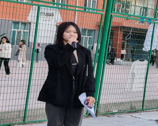 此次趣味运动会设置了跳大绳、踢毽子和拍大球3个团体项目,由段艺佟同学担任活动主持人,她通过引入“生命在于运动”这一观点向各位参赛选手介绍了本次活动开展的目的以及各项活动的比赛规则。