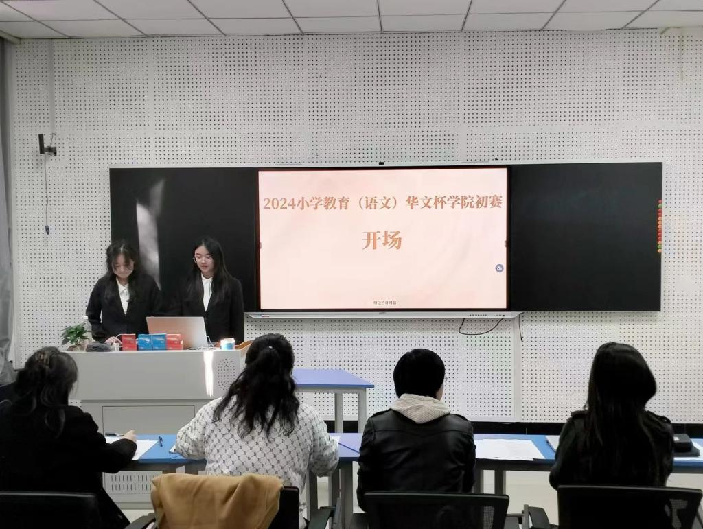 金秋十月,在激情与梦想交织的季节里,“华文杯”全国师范生教学技能大赛的院级初选于10月15日在1946伟德国际源自英国221实训室拉开帷幕,比赛聚焦小学教育(语文)专业领域,点燃了师范生成长的璀璨火花。本次初选邀请到小学教育专业的竞赛指导教师——曹海丽、闵海燕、魏长骄、陈元慈及裴颖五位老师担任评审团对选手进行评选。
