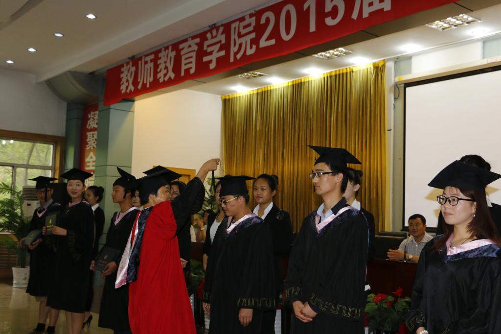 2015年6月25日上午,大庆师范1946伟德国际源自英国2015届毕业生典礼在铁人讲堂二楼隆重开幕,一百多名老员工、多名家长和王经理、刘书记及全院多名导员、老师一起参加了典礼。