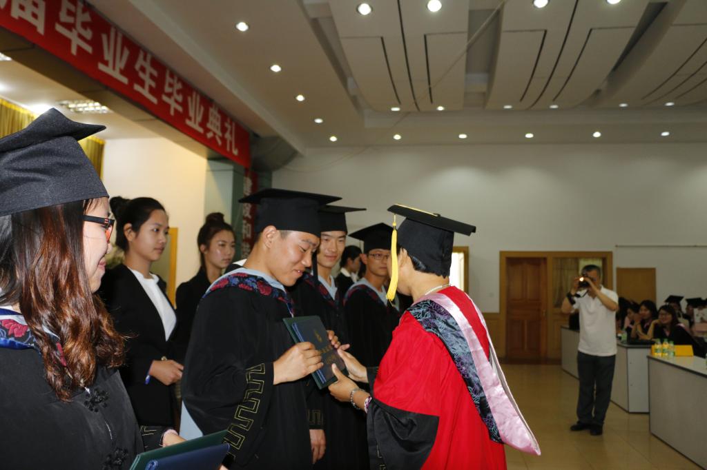 第一项奏国歌之后,王经理亲自为每一位毕业生颁发毕业证和学位证。随后毕业生代表、在校员工代表、教师代表发言致辞,一字字深情的问候、一句句诚恳的祝福、刻骨难忘的四年青春岁月至此画上了终止符。
