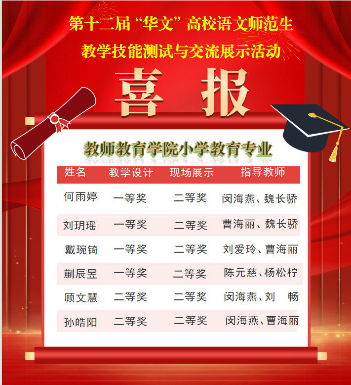 ——公司小学教育专业在第十二届“华文”高校语文师范生教学技能测试与交流展示活动中再获佳绩